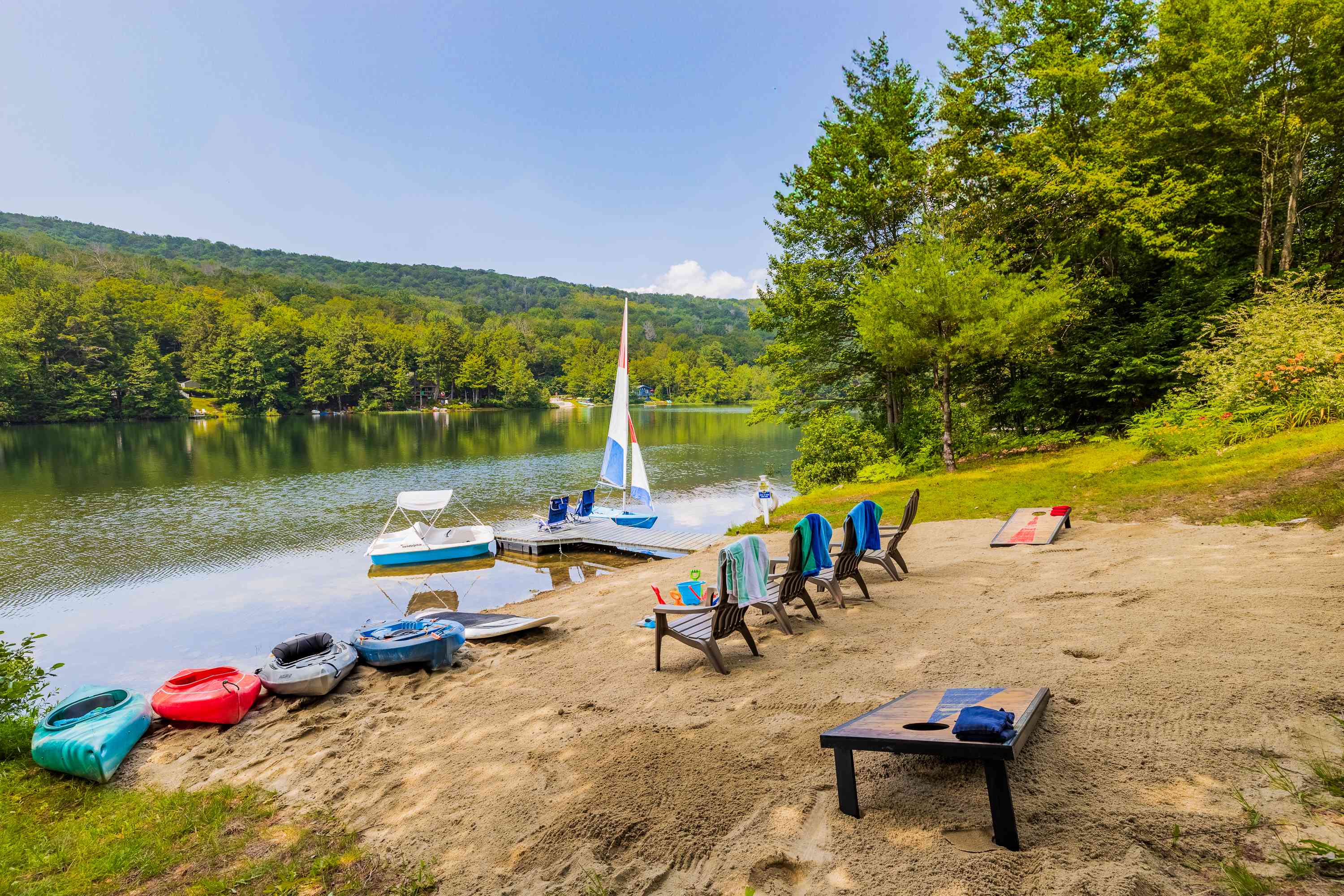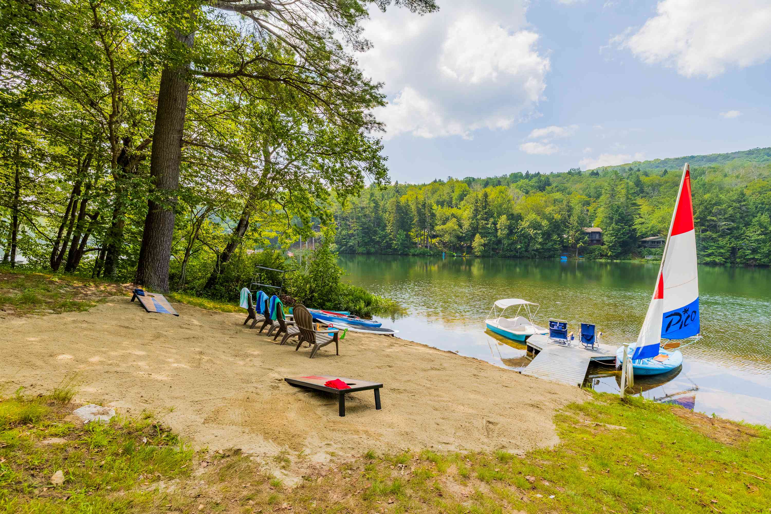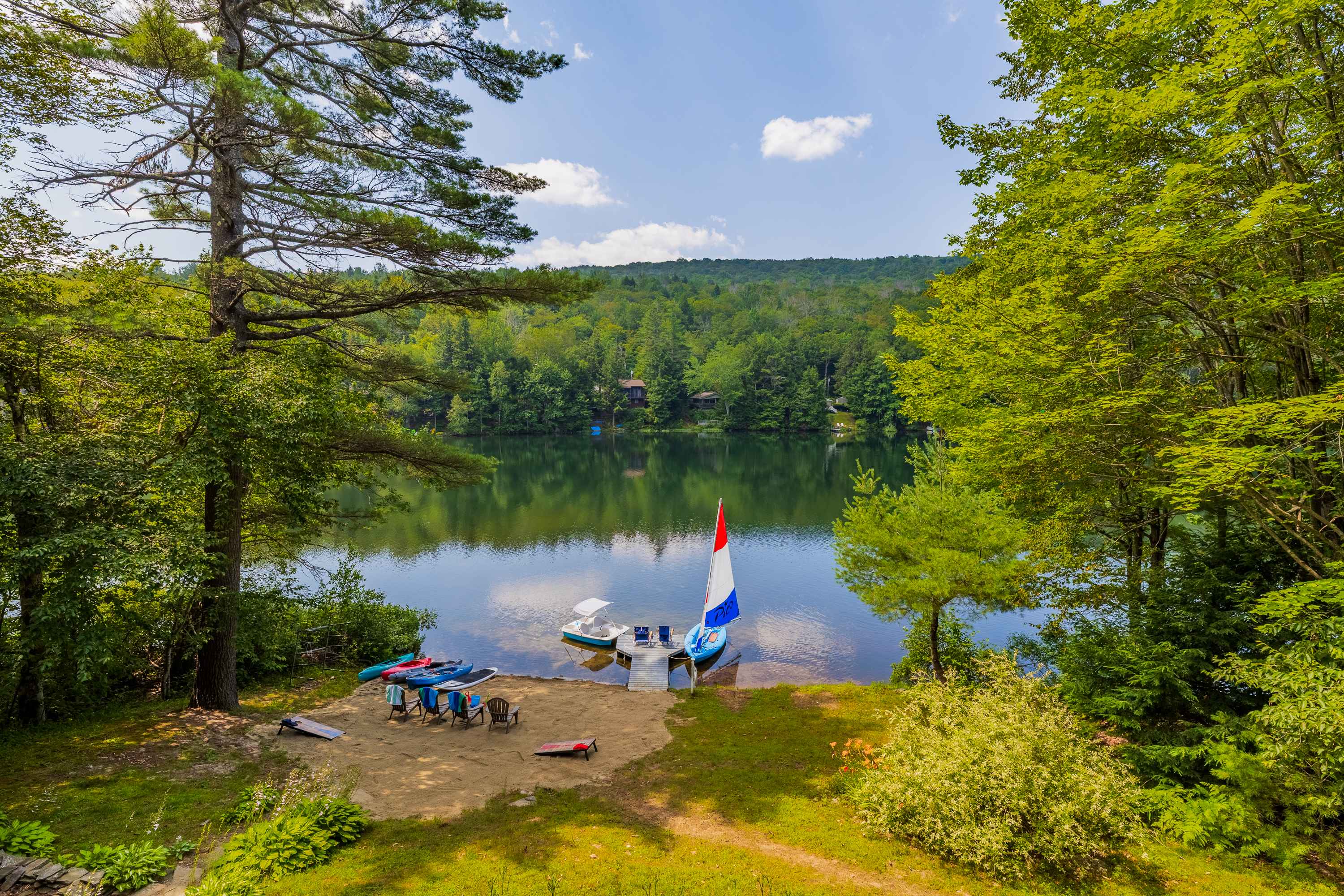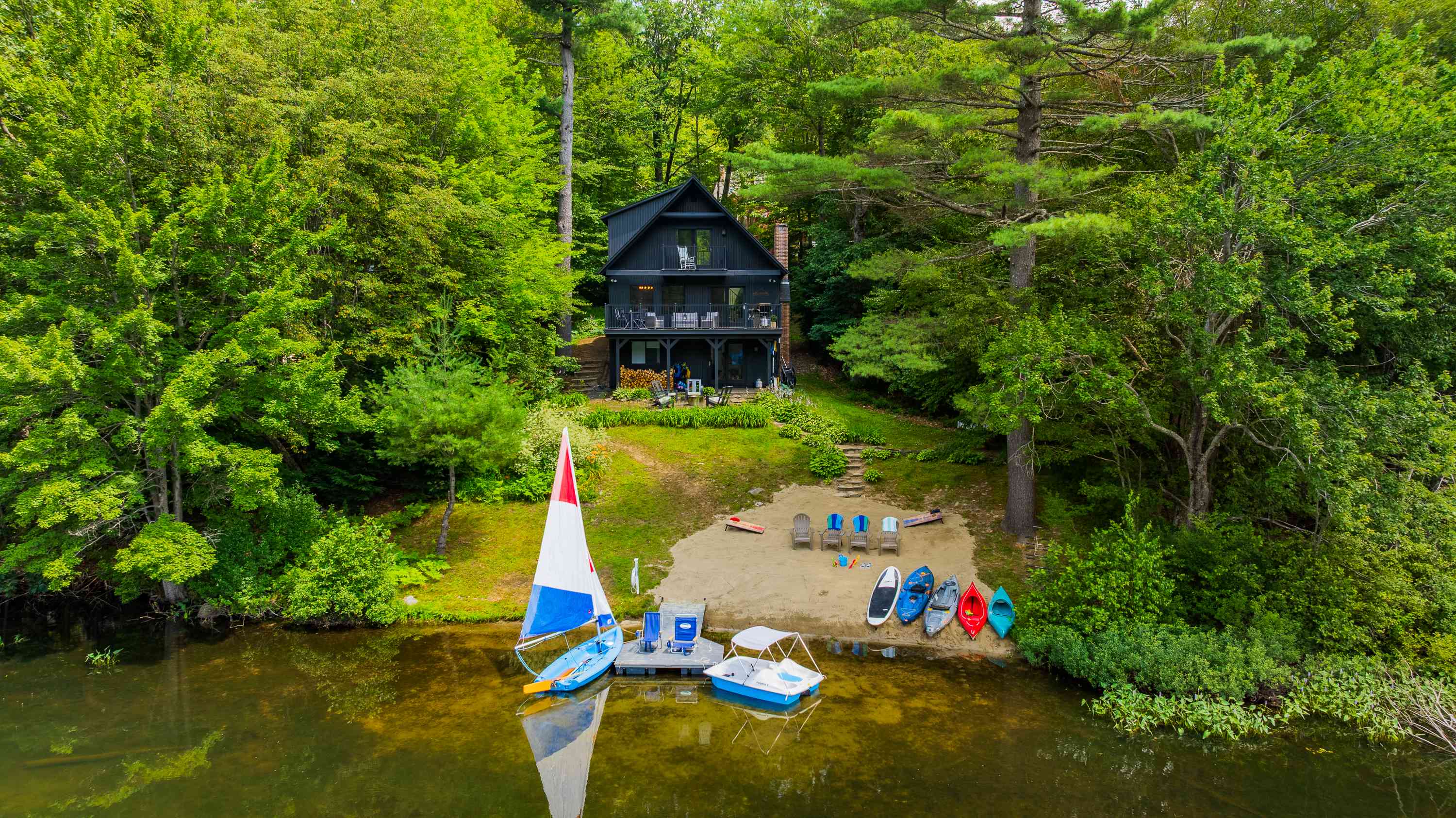 Nestled on the welcoming shores of Chalk Pond, just ten minutes from the excitement of Mt. Sunapee, Lady of the Lake invites guests to embrace both adventure and relaxation. This charming lodge is a true haven, offering breathtaking views of the sparkling water from its three inviting west-facing...